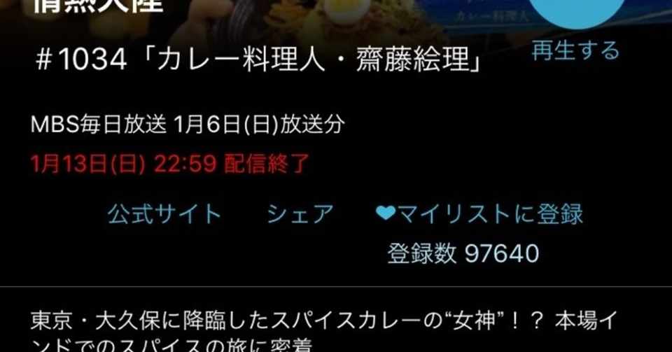情熱大陸 1034 カレー料理人 齋藤絵理 さん ひとみ カレー Note