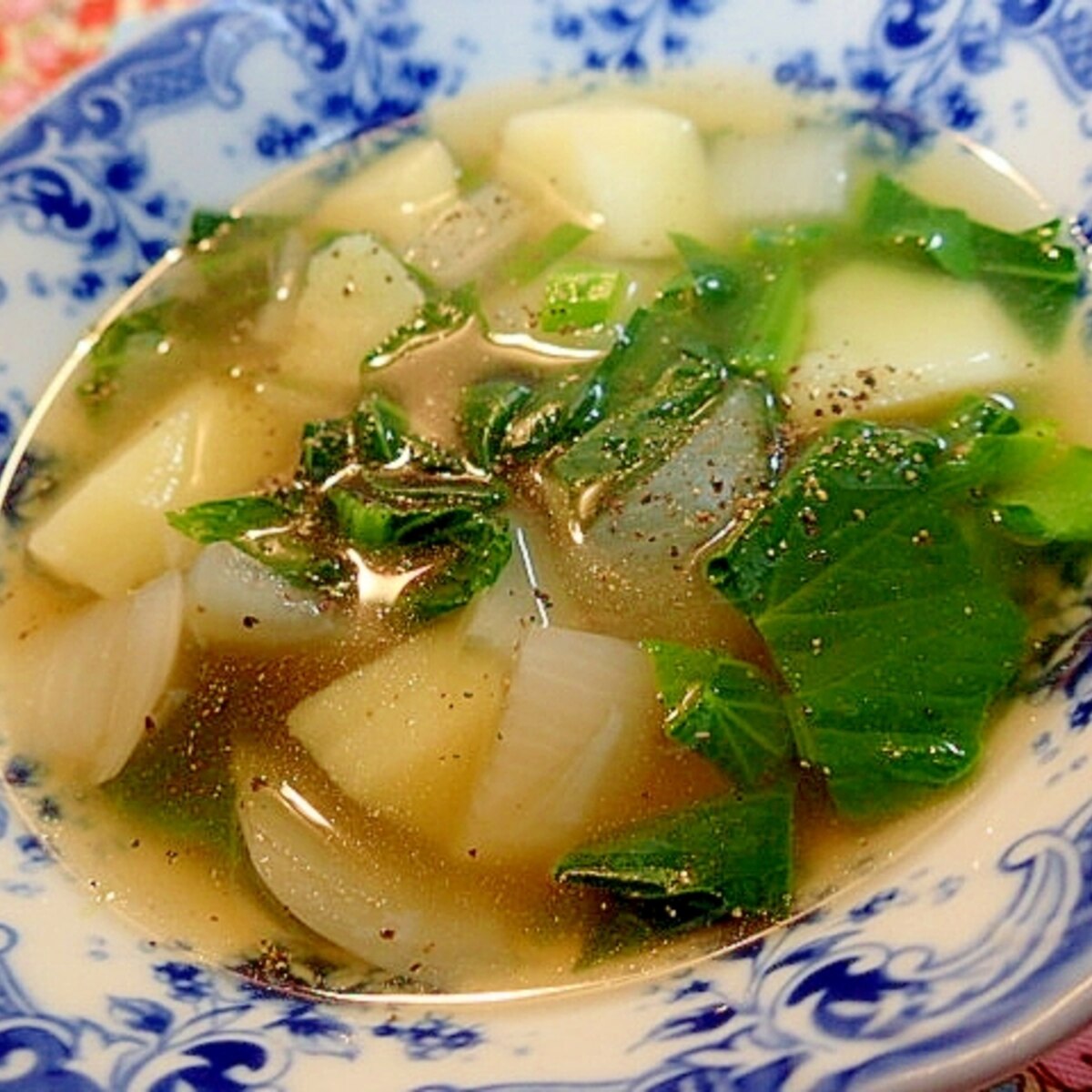 玉ねぎ 馬鈴薯 小松菜のブイヨンスープ レシピ 作り方 By ぷ みぃまま 楽天レシピ