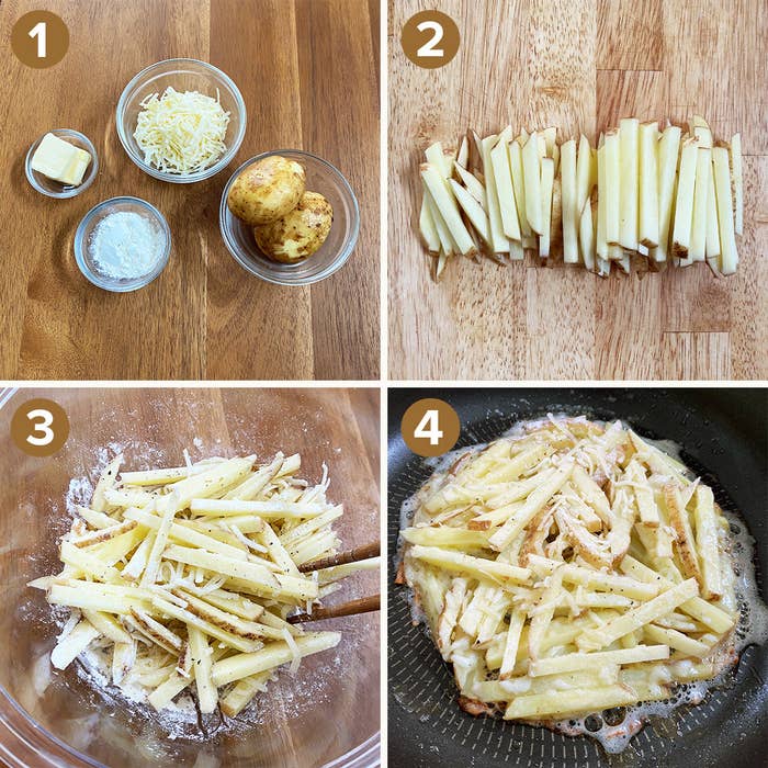 Tasty Japan A Twitter 新じゃがで簡単 カリカリバターチーズ焼き の作り方 ボウルに千切りにしたじゃがいも 皮付き ピザ用チーズ大さじ4 薄力粉大さじ1 塩 コショウ少々を入れて混ぜる フライパンにバターgを入れて火にかけ じゃがいもを薄く