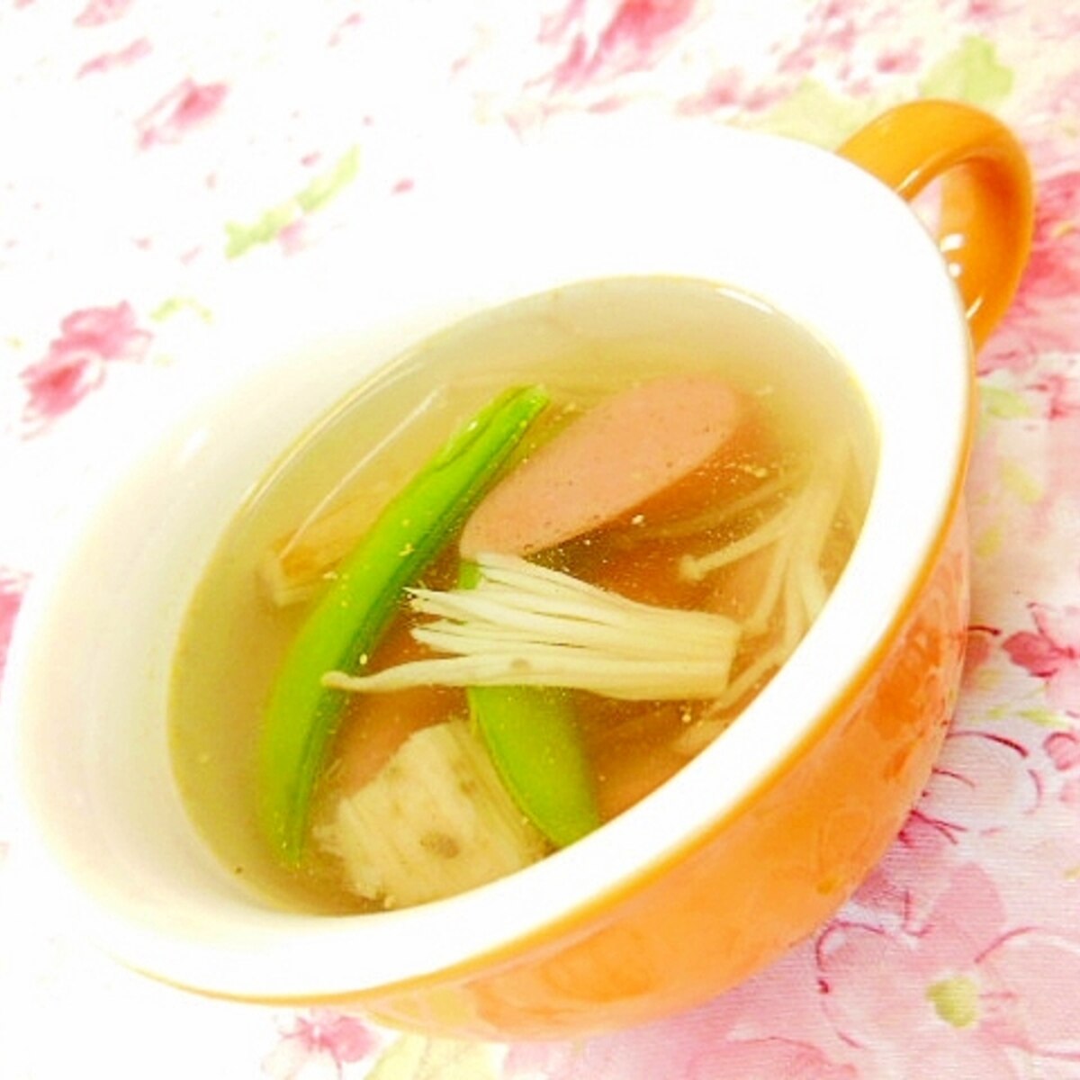 ほんだしde ウィンナーと茸とsエンドウのスープ レシピ 作り方 By 小太郎1212 楽天レシピ