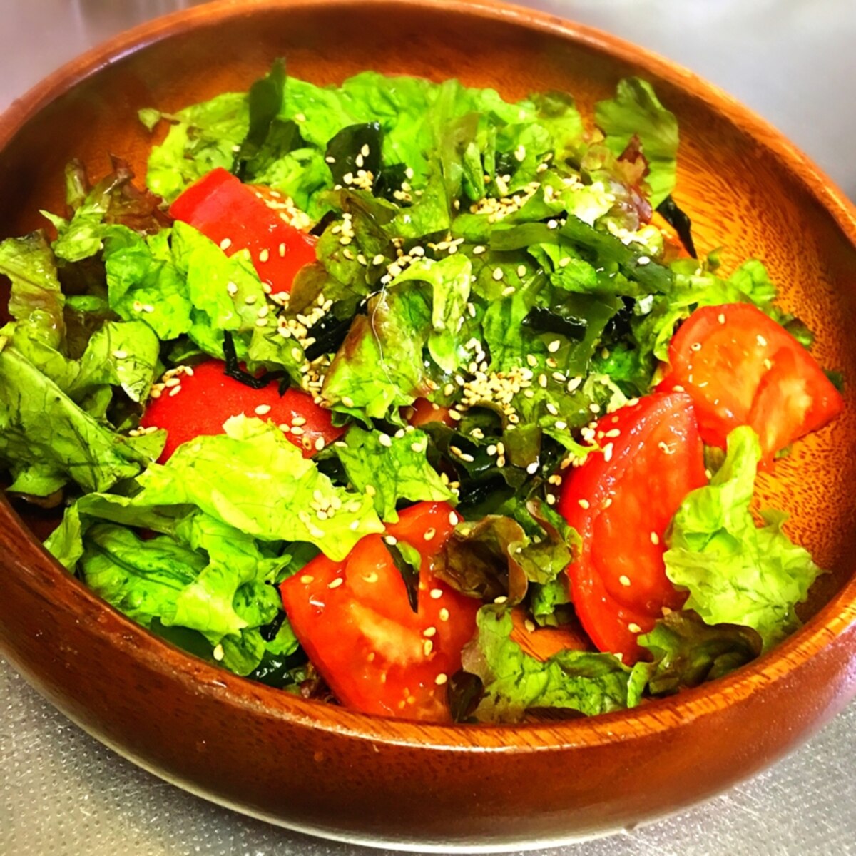 ʚ ɞチシャ菜とワカメ トマトのゴマドレサラダ レシピ 作り方 By プニプニちゃ 楽天レシピ